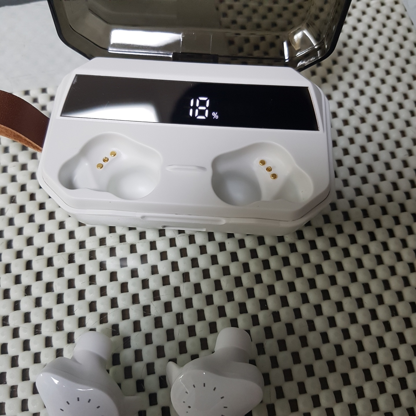 현재 충전기가 얼마나 충전되어 있는지는 위처럼 숫자로 표기되고, 이어폰을 빼고 난 충전기는 거치대처럼도 이용이 가능하더라고요.